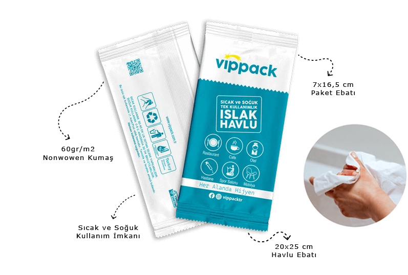 İşletmelere özel baskılı, sıcak ve soğuk olarak kullanılabilen, müşterilerin memnun kalacağı etkin kokusu ve havlu dokusu ile “Tek Kullanımlık Islak Havlu” ürünümüz en çok tercih edilen ürünler arasındadır. Otel & Restorant & Cafe Hastane & Spor Salonu & Mobilya Mağazaları gibi bir çok sektöre hitap etmektedir.